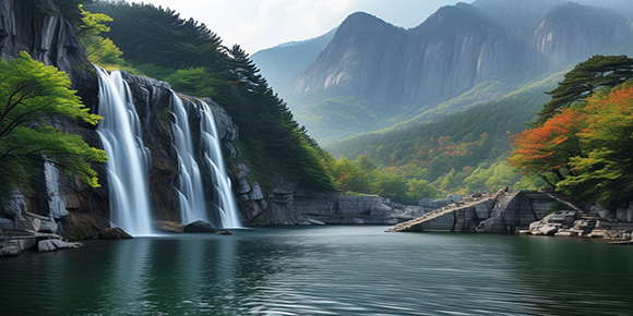 們?cè)谶@里可以看到獨(dú)特的疊水景觀——三疊水。峽谷里的水自上流下,遇上了高高低低、長長短短的石階,就產(chǎn)