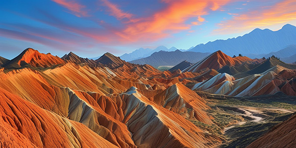 【七彩丹霞地貌】(不含門(mén)票 ,不含區(qū)間車(chē) ,游覽時(shí)間約 2 小時(shí))初識(shí)七彩丹霞 ,感嘆大自然的鬼斧神工。天 然去雕飾,這大概就是“你是無(wú)意穿堂風(fēng),卻偏偏引山洪”的完美詮釋了。世界 10 大神奇地理奇觀之一,是 600 萬(wàn) 年前 形成的奇特地貌。曼妙的丹霞色彩如同大地調(diào)色板 ,濃烈地交織在一起 ,如波浪順著山勢(shì)起伏 ,張揚(yáng)而奔放地 宣 泄著古老的激情。