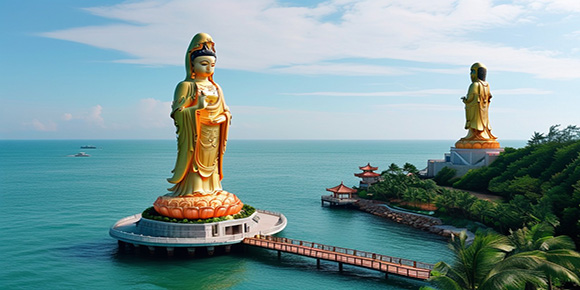 或【南山佛教文化苑】:(游覽時(shí)間不少于120分鐘)國家5A級旅游景區(qū) ,更有舉世矚目的108米“南山海上觀音” ,景區(qū)內(nèi)風(fēng)光秀麗,集佛教 文化、福壽文化、生態(tài)文化、民俗風(fēng)情、歷史傳說、園林建設(shè)為一體。在南山 ,既能領(lǐng)略熱帶濱海美景 ,同時(shí)還能獲得佛教文化帶來的心靈慰藉, 體味回歸自然、天人合一的樂趣。
