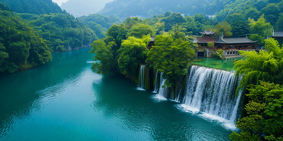 下午:游覽【陡坡塘瀑布】(游覽不少于1H),是黃果樹瀑布群中瀑頂最寬的瀑布,瀑布形成百米多長(zhǎng)的鈣化灘壩上,在平水期,水流清澈,瀑布顯得十分清秀嫵媚,水層沿著和緩瀑面均勻的散開,在粼粼的鈣化灘面上輕盈的舞動(dòng),如一層薄薄的半透明的面紗,又如一面面張開的素絹扇面在陽(yáng)光下泛著銀光。1986年版【西游記】片尾曲里面取景地。游覽結(jié)束后乘車前往酒店,入住酒店休息!