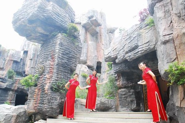 石花洞之旅結(jié)束了,我們真有些舍不得離開這清涼的地下宮殿。