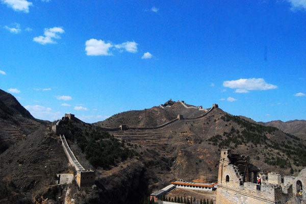不知道是誰(shuí)的猜測(cè),當(dāng)年修筑司馬臺(tái)長(zhǎng)城,因?yàn)樯絼?shì)過(guò)于險(xiǎn)峻,筑城青磚只能由善于攀爬巖壁的山羊馱到山上,敵樓也因此修得十分細(xì)長(zhǎng)。只是奇怪,如此費(fèi)力修建這段長(zhǎng)城,卻似乎看不出多大意義:薄薄的墻體根本無(wú)法長(zhǎng)久站立防守的官兵,縱然誘使敵兵費(fèi)盡辛苦翻過(guò)這窄墻,大約一看之下也會(huì)大驚失色,失足掉到障墻背后另一面山崖下粉身碎骨——天險(xiǎn)與絕路,在此竟不給人退路,難免感慨修筑者的艱難和設(shè)計(jì)者的良苦用心。而站在障墻中間低頭俯瞰,山竟已這般高聳。生死懸于一線,卻不再顫抖不安。大約只有當(dāng)恐懼被壓到極限,痛苦才也會(huì)在剎那間化為無(wú)法言喻的超脫……