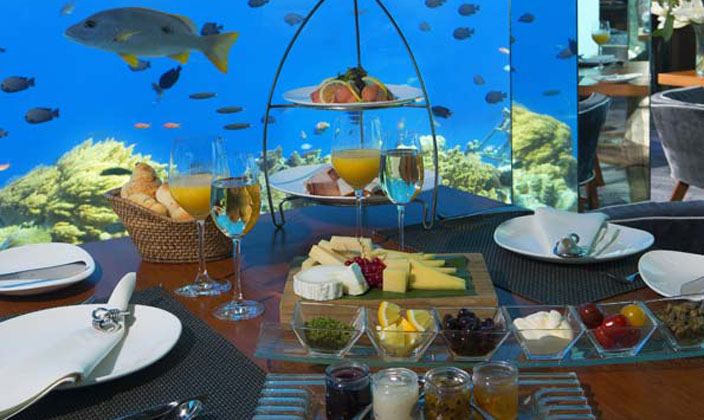 數(shù)千萬美元投資建成的唯美水下餐廳,是馬代第二家擁有水下餐廳的島嶼。奢華的水下酒窖餐廳擁有連美食家都不可抗拒的珍饈美味。