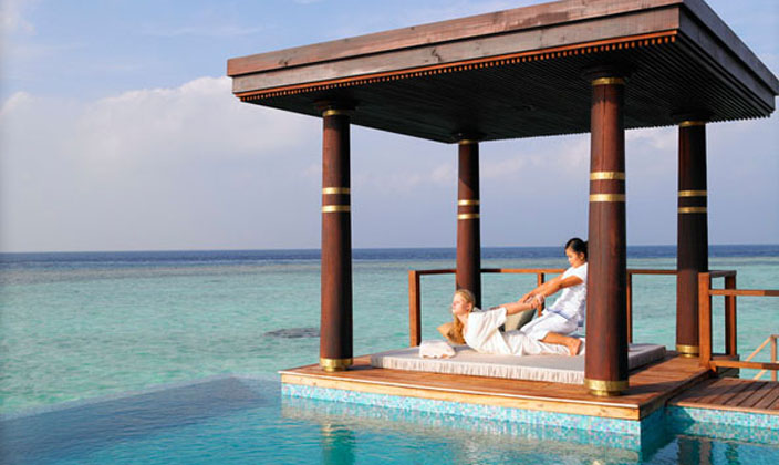 79個寬敞的私人泳池別墅,面積從260平方米到2,730平方米不等,或屹立于水上,一覽無敵海景,或盤踞在私人沙灘人跡罕至的懷抱中。 在聯(lián)合國教科文組織世界生物圈保護區(qū)內(nèi)一些最寶貴的珊瑚礁間浮潛,探索無人居住的小島,周圍環(huán)繞著大量珊瑚礁,那里是海龜、鰻魚和生長中的珊瑚樹的家園,或是獨自揚帆出海,駛?cè)胍黄跸胂蟮慕k麗色彩,去迎接最壯美的馬爾代夫日落。