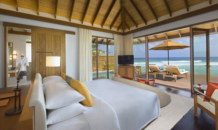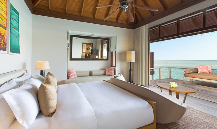 在薇莉島安納塔拉水療度假村,富麗堂皇的92平方米豪華水上度假小屋盡顯馬爾代夫的魅力,為您奉上無與倫比的豪華住宿體驗(yàn)。享受超大空間,包括獨(dú)立梳妝室和寬敞的室外私人平臺(tái);躺在私人小屋的日光躺椅上,飽覽迷人的蔚藍(lán)礁湖;浸浴在半戶外雙人水磨石浴池中,盡享舒適愜意。 每棟豪華水上度假小屋均直接連接寧靜的大海,室內(nèi)裝潢采用最精美的材料,將溫柔婉約的小島設(shè)計(jì)美學(xué)融入其中。室內(nèi)設(shè)施包括純平電視、小吧臺(tái)和高速互聯(lián)網(wǎng)接入,確保您可以享受豪華的現(xiàn)代化住宿。
