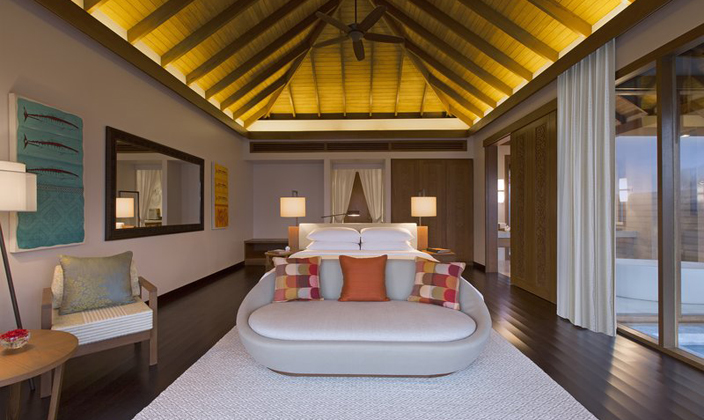 馬爾代夫薇莉島安納塔拉的62平方米水上度假小屋坐落于原始熱帶天堂之中,配有硬木地板和椰葉屋頂和時(shí)尚的現(xiàn)代內(nèi)飾。床上鋪著當(dāng)?shù)丶徔?..查看更多
