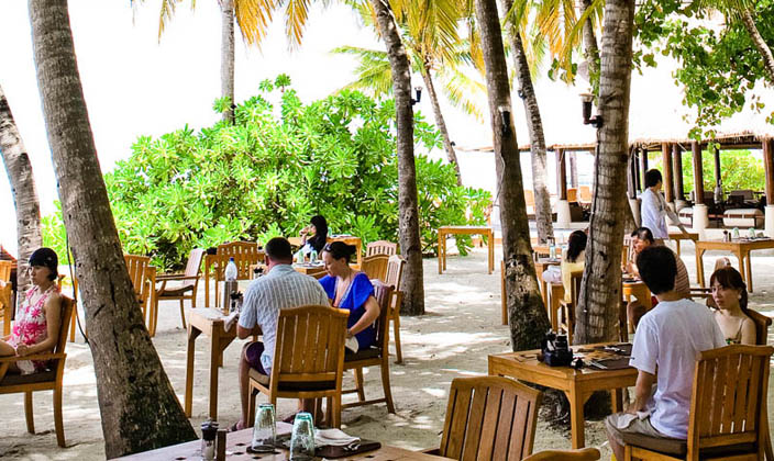 美食特色:早餐、便餐等。餐廳介紹:餐廳屋頂由茅草(當(dāng)?shù)厝朔Q之為 alang-alang)搭建而成,掩映于白色沙灘的熱帶樹木中,鄉(xiāng)村木制桌椅打造出輕松的格調(diào),在遠(yuǎn)離喧囂的寧靜小島上,新鮮配制的各式早點(diǎn)和豪華豐盛的晚餐套餐,供您慢慢享用。