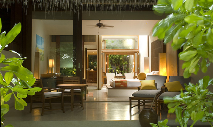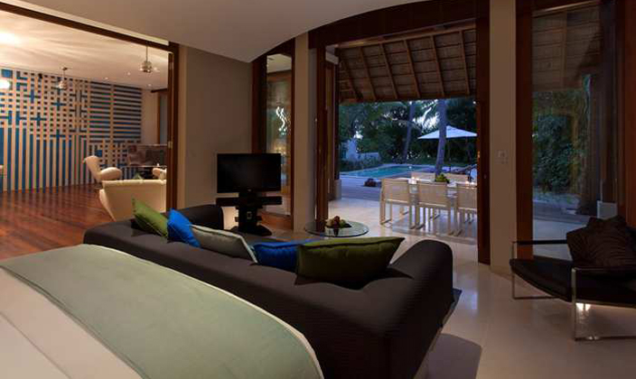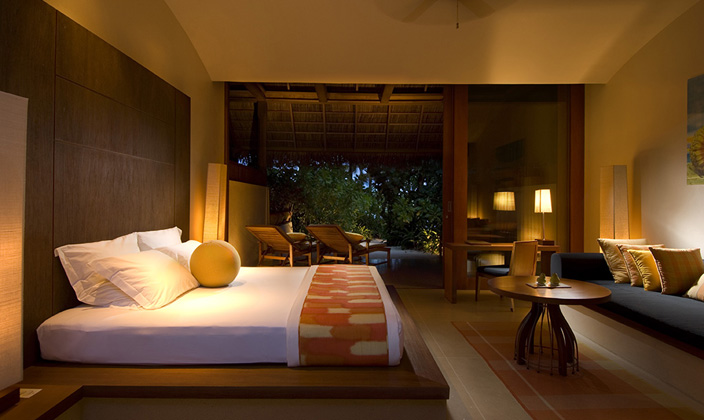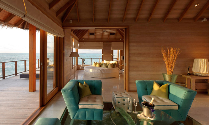 別墅圍繞著Spa Retreat水療區(qū)(酒店三大水療中心之一)而建,每間別墅內(nèi)設的專屬獨立水療護理室內(nèi)均配有兩張按摩床、迷你健身房及健身球等設施。 寬敞的空間設計與淡入淡出的馬爾代夫現(xiàn)代風格和諧而統(tǒng)一,淳樸木質(zhì)內(nèi)飾、茅草屋頂,房中隨處都可飽覽無敵海景,讓賓客時刻擁有與自然融為一體之感。