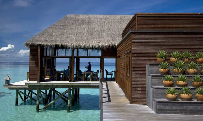 希爾頓集團旗下奢華六星酒店,水飛或內(nèi)陸飛機均可上島,房型多且寬敞,大多有私人泳池,設施完備奢華,SPA頂級。島上擁有潛水中心、水上活動中心、健身中心、露天電影院和一架雙人潛水艇。