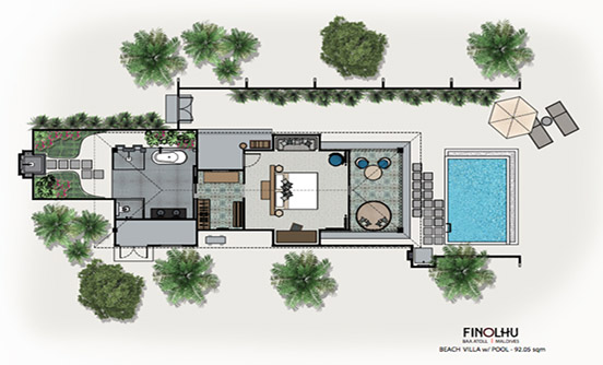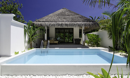 在豪華的熱帶花園特色的綠松石Finolhu瀉湖和太陽(yáng)椅和花園寬敞的室外用餐露臺(tái)私人海灘,210平方米的摩爾風(fēng)的海灘別墅,配備了40英寸純平電視,私人葡萄酒和迷你酒吧。