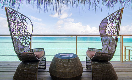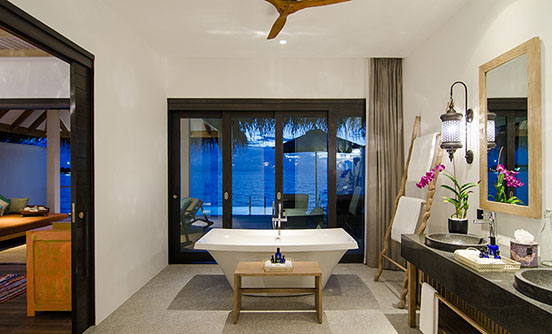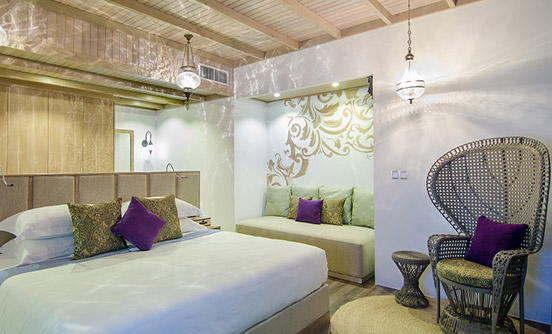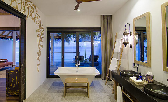 180sqm水上別墅的靈感來(lái)自法國(guó)里維埃拉的鮮艷色彩,可直接進(jìn)入海洋,有個(gè)6m長(zhǎng)的淡水游泳池以及設(shè)計(jì)獨(dú)特的家具和大型豪華的搖椅和一個(gè)私人陽(yáng)臺(tái)室外的沙發(fā)床。 享受40英寸平板電視的私人葡萄酒及迷你酒吧、大型戶(hù)外陽(yáng)臺(tái)配有躺椅和戶(hù)外淋浴,獨(dú)立衛(wèi)生間的海景浴缸和室內(nèi)淋浴而忽略了驚人的finolhu瀉湖和1.8公里長(zhǎng)的沙灘。