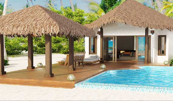 閃閃發(fā)光的白色沙灘和綠松石瀉湖、沙灘泳池別墅有155平方米,為你的完美的私人住所與大型復合用的木甲板,備受稱贊的氣墊床和太陽椅。私人泳池別墅值得體驗。