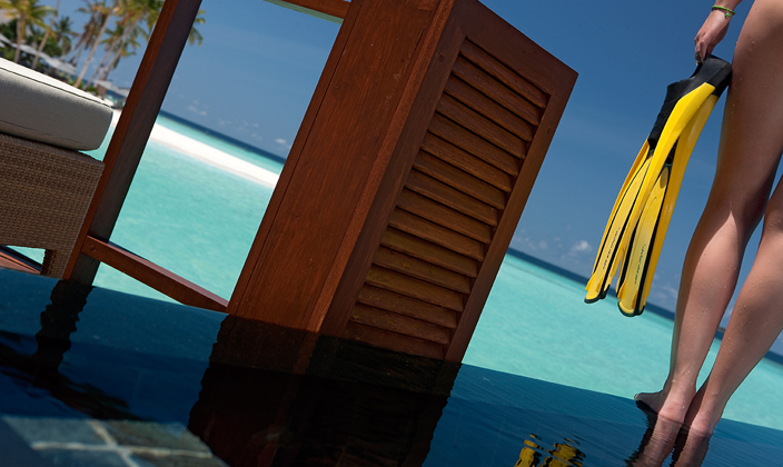 所有的理療室均設(shè)在白沙青水的印度洋上,鄰近碼頭,每間理療室均有一個廣闊的視野,可以穿過礁湖到陸地上。 營業(yè)時間:9:00am - 9:00pm 設(shè)施: 6 間單人理療室 蒸汽室 3 間雙人理療室 冷熱游泳池 1 間印度草藥室和4間理療室 娛樂區(qū) 1 間泰式理療室 桑拿 "海洋沙龍"美發(fā)(洗、吹、新娘妝和造型) 瑜珈、按摩浴池 美甲 精品水療提供細(xì)膩的手法和天然的護(hù)理產(chǎn)品