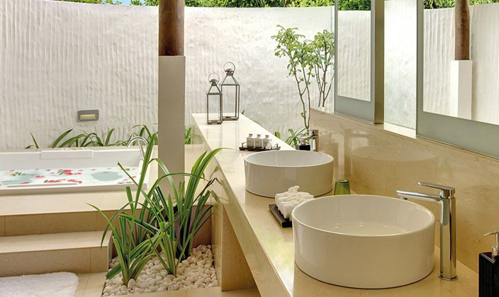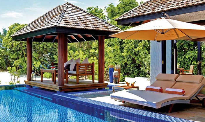 帶有異域風(fēng)情的泳池家庭別墅建立在干凈的沙灘上。每一棟別墅中都配備一個(gè)專(zhuān)屬的無(wú)邊際游泳池,一個(gè)可俯瞰游泳池和海灘的露天平臺(tái),戶(hù)外座椅區(qū)和茂密的私人花園。經(jīng)過(guò)一處馬爾代夫風(fēng)格的中庭進(jìn)入家庭別墅,別墅通向一個(gè)寬敞的起居室,可以俯瞰大洋。