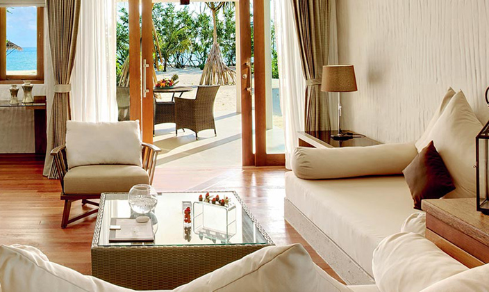 海灘套房沿神仙珊瑚島白沙海岸分散分布。臥室有法式落地窗,環(huán)境寬敞舒適,設(shè)有獨(dú)立衣帽間。躺在開(kāi)放式房間里閱讀放松,或在室外按摩泳池內(nèi)洗個(gè)澡?;蛟S您還想試一下馬爾代夫吊床涼椅,體驗(yàn)無(wú)盡的樂(lè)趣。