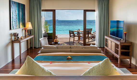 全島共有15間海灘泳池別墅,配備一個(gè)特大號(hào)雙人床,坐息區(qū),木質(zhì)地板和洗漱區(qū),空調(diào),吊頂電扇,私人保險(xiǎn)箱,國(guó)際 直撥電話和私人日光曬臺(tái),配備海灘躺椅和桌椅。房?jī)?nèi)有葡萄酒小冰箱,迷你酒吧,意式咖啡機(jī)和免費(fèi)茶及咖啡。
