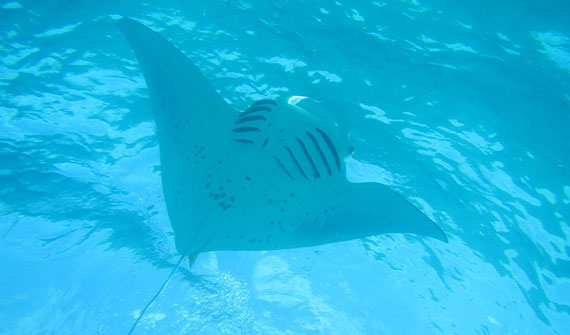 在芙拉瓦麗深潛是一個(gè)純粹的享受; 豐富多樣的海洋生物,會(huì)經(jīng)常有魔鬼魚,礁鯊和海龜?shù)情T拜訪芙拉瓦麗家門口的潛水點(diǎn)。芙拉瓦麗在拉維亞尼群島環(huán)礁頂級(jí)的潛水點(diǎn)的正中間,潛水員可以看到在鮮艷的珊瑚礁附近那些令人眼花繚亂的深海魚,并與海龜親密接觸。友好的礁鯊在芙拉瓦麗水域四處游弋,如果幸運(yùn)的話,大海時(shí)不時(shí)扔過(guò)來(lái)十幾只魔鬼魚給您瞧瞧。