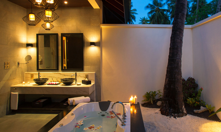 套房坐落于馬爾代夫位置最佳的幾處沙灘,每一套面積約為132平方米,距海岸線僅有幾英尺的距離。套房室內(nèi)寬敞、設(shè)施奢華。配有充足的戶(hù)外活動(dòng)區(qū)域,露天陽(yáng)臺(tái)可遠(yuǎn)眺沙灘,同時(shí)還配置有舒適的日光躺椅和寬敞的室外空間。每間套房均可直接通往沙灘,客人可在黃昏時(shí)刻欣賞最美的日落景觀。高級(jí)套房的地板選材為天然木材與石頭,帶有露天浴室和私人戶(hù)外活動(dòng)空間。浴室裝有按摩浴缸。 專(zhuān)屬服務(wù): -別墅直接登記入住。 -別墅內(nèi)提供歡迎氣泡葡萄酒一瓶以及精美點(diǎn)心。 -每日提供新鮮的異域水果籃。 -您可選擇2瓶葡萄酒:1瓶白葡萄酒,1瓶紅葡萄酒。 (從鉑金升級(jí)葡萄酒單中選擇 - 每日及時(shí)補(bǔ)充) -可從您喜歡的烈酒品牌中,另外選擇2瓶烈酒(從鉑金升級(jí)烈酒單中選擇)。