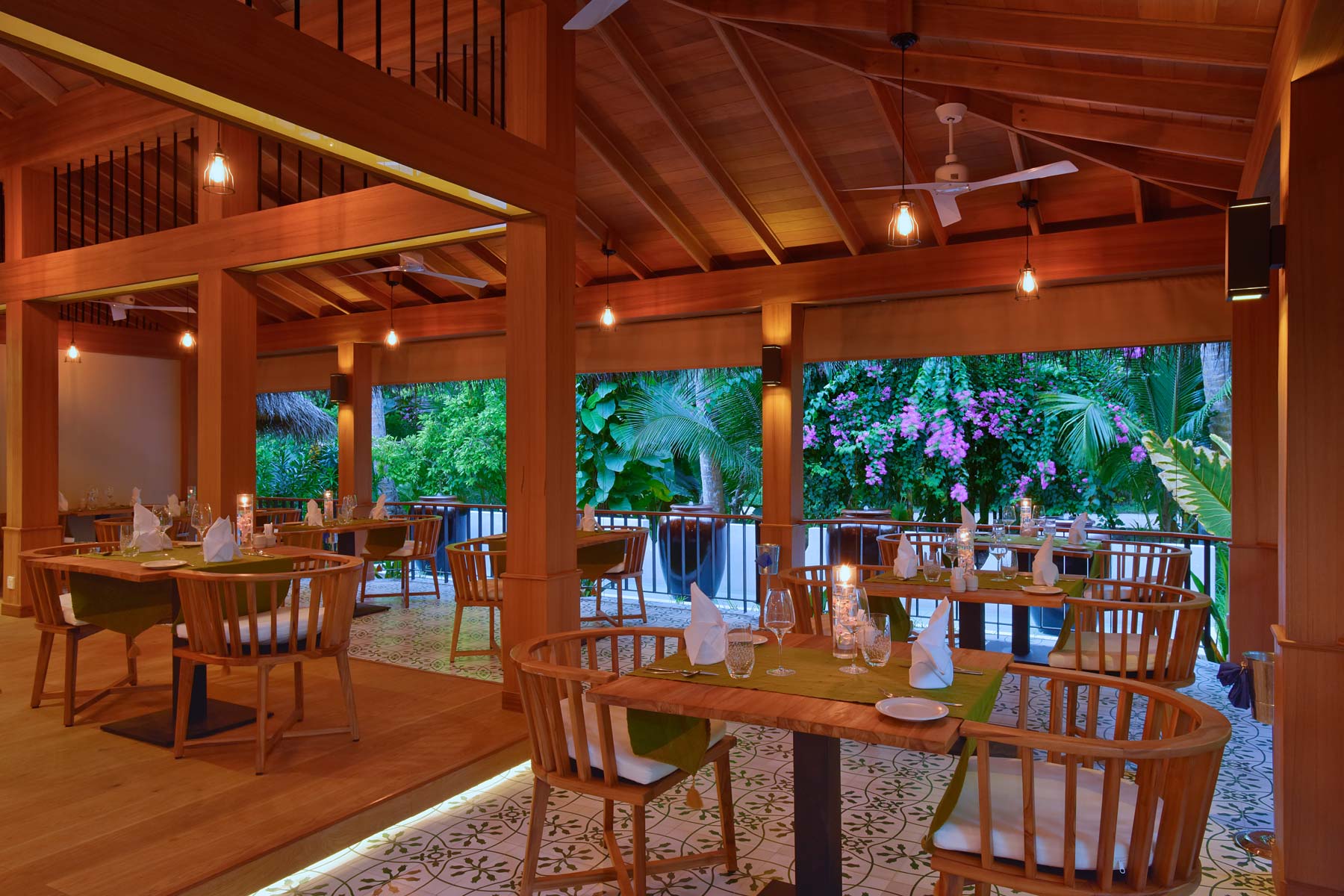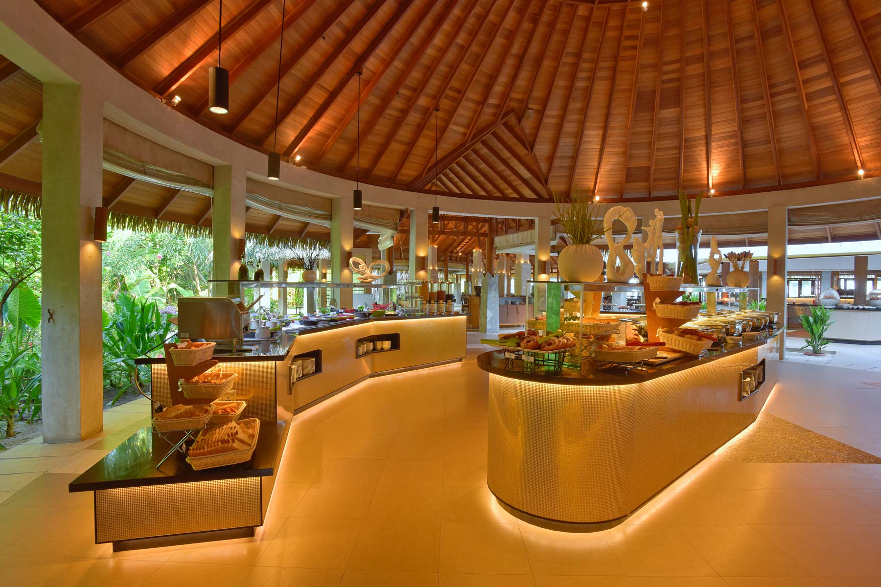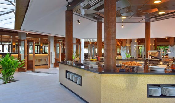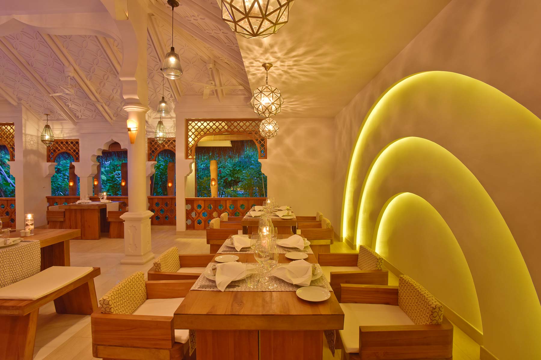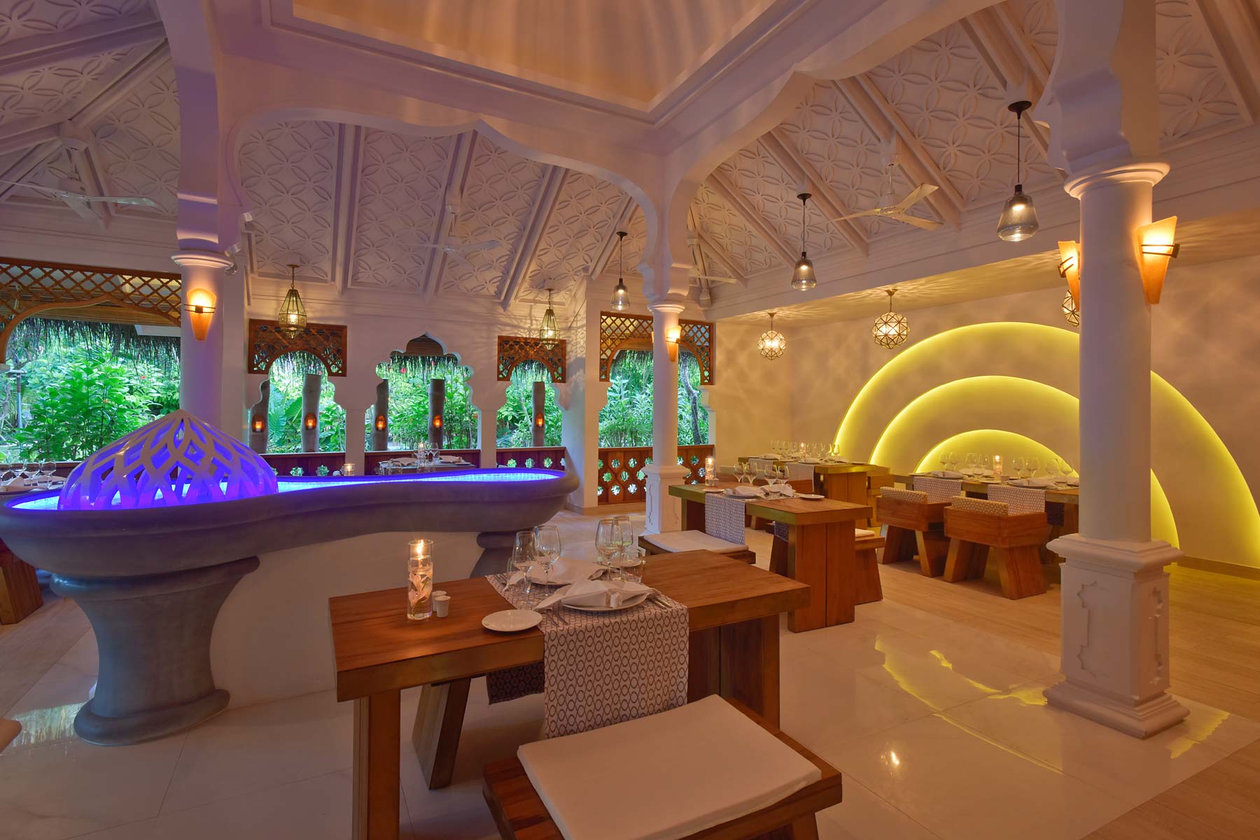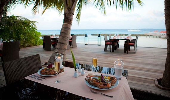 美食特色:馬爾代夫美食。The reef位于島上延伸出來的狹窄沙灘上,是該度假村最佳的海鮮餐廳,供應(yīng)馬爾代夫當(dāng)?shù)刈钚迈r的海鮮和進(jìn)口海鮮,按照您喜歡的口味,在您面前為您做出做滿意的海鮮晚餐!