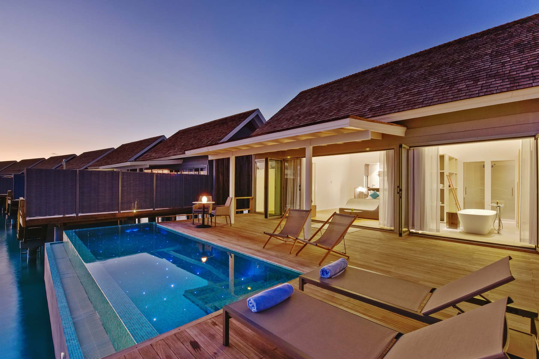 池的水別墅坐落在清澈的瀉湖設(shè)計類似于豪華水上別墅。這些別墅還包括一個私人游泳池(18平方米)俯瞰大海。