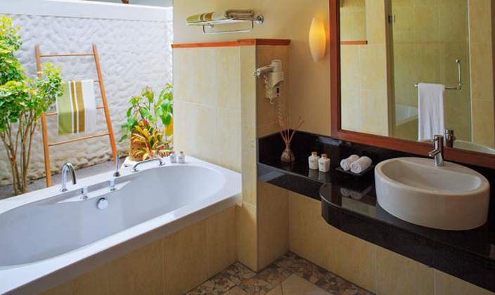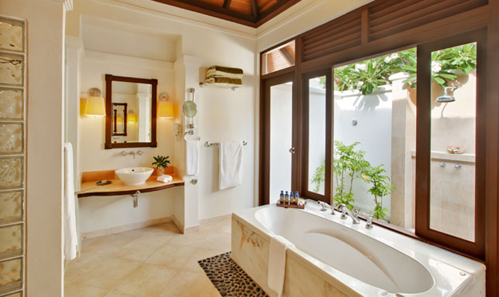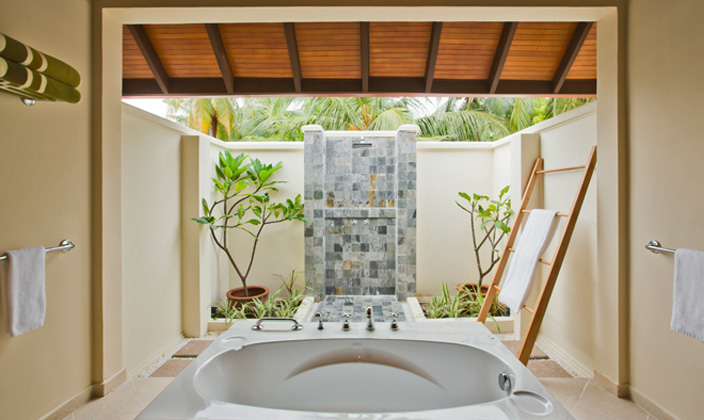 開放式的花園衛(wèi)生間配以超大的浴缸,讓您感覺仿佛在花園中沐浴。腳下的沙石給您帶來一絲清涼,躺在戶外的沙發(fā)床,陽光從樹葉間透過,在波光粼粼的大海中暢游。這就是您夢寐以求的馬爾代夫獨棟平房。