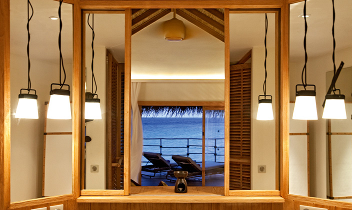 慕芙士島水上別墅配有名家設(shè)計的獨特家具使房間顯得更為精致,為客人提供了一個豪華而便利的住宿環(huán)境。您將會被這里最熱情周道的服務(wù)而動容。這里設(shè)施齊全,配備了一個木制陽臺,讓您可以在潛完水后,有一個休息和欣賞美景的好去處。