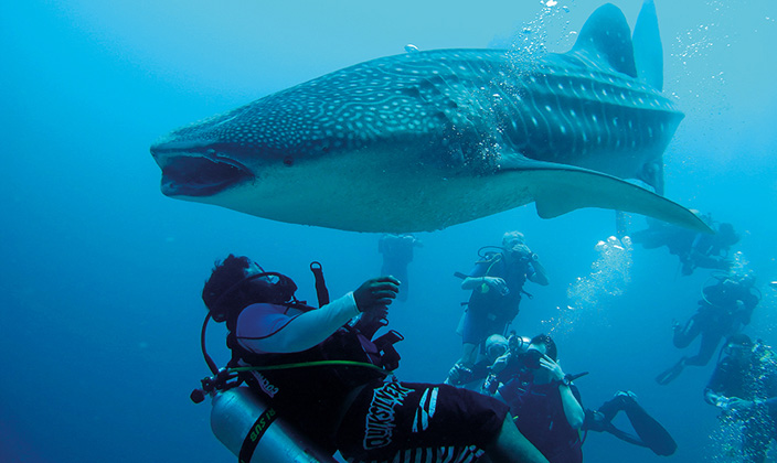 被公認(rèn)為是世界上最好最大的潛水點之一,浮潛裝備免費租借,擁有多達(dá)50多個潛水點,處在最佳觀賞鯨鯊的環(huán)礁,一年中有10個月能看到鯨鯊!