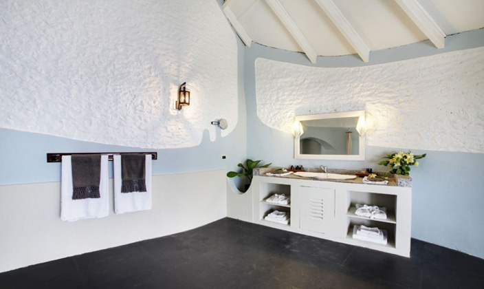 由臥室,客廳,浴室組成,浴室是設(shè)置在花園中的,其原始設(shè)計(jì)由意大利建筑師所創(chuàng)造,客廳可通往私人海灘,海灘上有沙灘休閑區(qū),桌椅和太陽(yáng)傘,在平房?jī)?nèi)還有露天淋浴設(shè)施,帶給客人舒適,方便的享受。