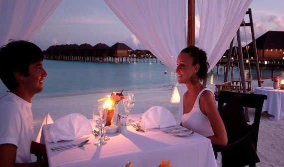 美食特色:國際美食。日落餐廳完全坐落在水之上,是雙魚島的主餐廳,提供一日三餐,各國口味菜肴定能滿足您的胃。有意大利菜,中國菜,東南亞菜,地中海菜,在露天的大甲板上,讓蜜月新人度過難忘的時刻,帶來愉悅的心情。