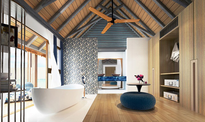 建在無敵瀉湖美景之上的水上別墅面朝東側(cè),擁有寬敞的內(nèi)部空間,玻璃地板的設(shè)計(jì)讓您在室內(nèi)即可觀賞各種水下生物,浴室內(nèi)橢圓形的浴缸設(shè)在了最佳景觀位上。
