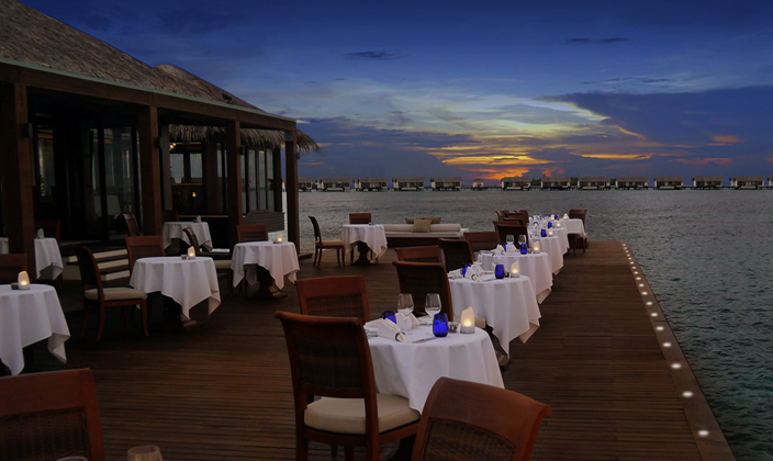 美食特色:西式或海鮮燒烤。餐廳介紹:餐廳位于230米木制碼頭的末端,坐擁優(yōu)美的海景,廚藝精湛的大廚為您精心烹飪多款以新鮮海鮮及肉類為主要食材的精致西餐,并為您解開Falhumaa的美麗傳說。