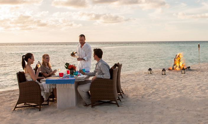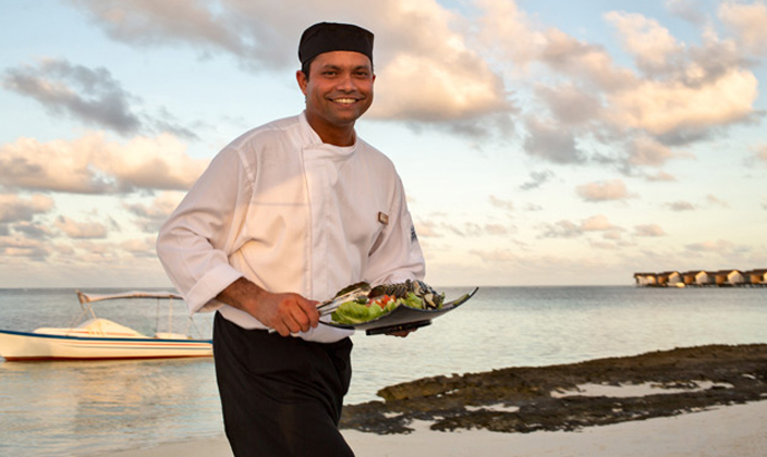 美食特色:浪漫燭光燒烤餐。餐廳介紹:您可選擇在自己的別墅內(nèi)或沙灘上享用一頓浪漫的燭光燒烤晚餐。您的私人廚師及服務(wù)生將為您提供無微不至的服務(wù)。