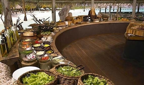 美食特色:各式美酒。酒吧介紹:酒吧建在海濱淺水區(qū),整天提供各類下酒甜點(diǎn)和輕食。午餐還提供自助餐。你可以從菜譜中找出您所愛吃的食品,自行組合創(chuàng)造出個(gè)性套餐風(fēng)格,度假村后園內(nèi)種植的新鮮蔬菜,是這里蔬菜沙拉的絕佳食材,此外還有壽司、地中海美味餐、每日新捕到的鮮魚、肉類多為進(jìn)口貨,以及當(dāng)?shù)厥a(chǎn)的草藥植物和野菜均可下廚。