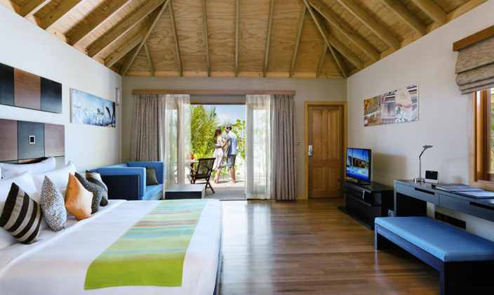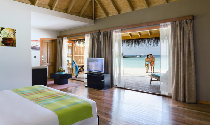 沙灘別墅坐落在島上的熱帶植被之中,按摩浴缸沙灘別墅是相同的,只是比按摩浴缸沙灘別墅小,房間中的裝潢設(shè)計(jì)非常的自然和諧,給人一種安靜祥和的感覺,但是能觀賞到大海的角度有些狹窄。
