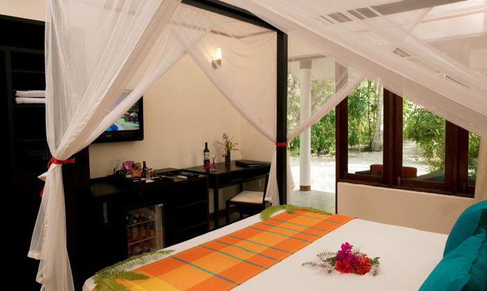 座落在水上瀉湖之中,從你的私人碼頭步行很短即可到達(dá)。房間臥室較大,木制地板,IPOD基座,茶及咖啡機(jī),有戶外浴室及按摩浴缸,從木制的樓梯能夠從陽臺上直接下到海里。