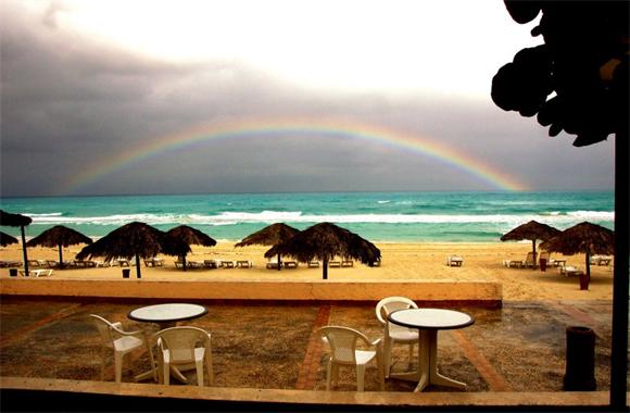 距哈瓦那以東140千米處的巴拉德羅海灘,是世界著名的海灘度假區(qū)之一。海灘長達(dá)25千米,寬50米~100米,是集大海、沙灘、陽光、藍(lán)天為一體的最美的海灘。這里的海水具有藍(lán)色的一切層次,色彩從近處的淺藍(lán)變?yōu)槲邓{(lán),在天際處又變?yōu)樯钏{(lán),層次漸變而分明,藍(lán)得神奇,藍(lán)得令人驚嘆。這里全年適宜游泳,走出很遠(yuǎn)的距離,海水也只漫到腰部。