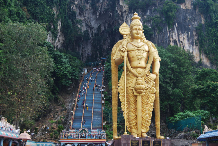 印度教圣地黑風洞,被發(fā)現(xiàn)已有l(wèi)00多年之久。黑風洞是一處石灰?guī)r溶洞群,它是奇特的山景和神秘的