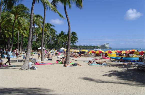 威基基(Waikiki)海灘:過去曾是夏威夷皇室的娛樂場,這個(gè)歷史有名的旅游熱點(diǎn)現(xiàn)在是世界各地游客的聚集地。