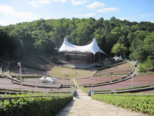 劇場(chǎng)的兩條縱向的通道將88級(jí)臺(tái)階分成三層,設(shè)有88排環(huán)型坐席,成為一個(gè)可以同時(shí)容納22000名觀眾就坐、舉行大型戶外演出活動(dòng)的理想場(chǎng)地。通常這里演出流行和古典音樂(lè)會(huì),偶爾也放映露天電影。重新修整后,劇場(chǎng)高品質(zhì)的音響設(shè)備更使聽(tīng)眾無(wú)論處在劇場(chǎng)的哪個(gè)位置,都能領(lǐng)略到同樣的舞臺(tái)效果。