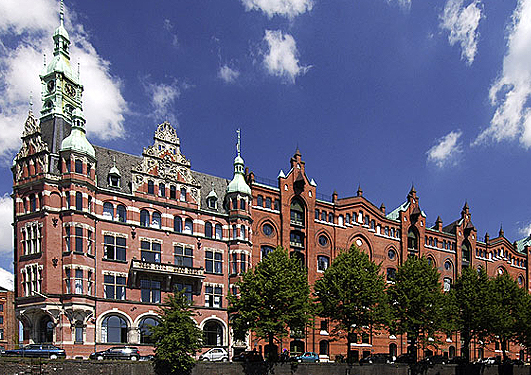 六至七層樓磚結(jié)構(gòu)的哥特式建筑構(gòu)成了水陸兩路的長(zhǎng)長(zhǎng)的倉庫城街區(qū)。在厚實(shí)的墻壁后面儲(chǔ)存著來 自世界各地的“珍寶”,人們不僅可找到咖啡、茶、可可和煙草,還有地毯和高檔的電子產(chǎn)品。這些物品在這里不僅被儲(chǔ)存,而且部分被懂行的工作人員清洗、讓它們變得更完滿。 在倉庫城里有世界上最大的