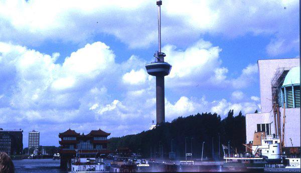 歐洲桅桿是在鹿特丹舉辦花卉博覽會(huì)之際建造的。貝婭特麗克絲女王光臨了1960年隆重的揭幕儀式。他是第一位在貴賓簿里簽名的貴賓。初建時(shí),“歐洲桅桿”高度是112米,塔身只有101米高。這個(gè)高度足以讓它在馬斯河岸的鹿特丹高高聳立。但是,它被后來(lái)到處新建的高樓超過(guò)。1970年添加了一個(gè)“太空塔”,使總高度達(dá)到了185米,直至今日仍是荷蘭最高的地標(biāo)建筑之一。