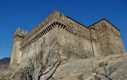 貝林佐納是提契諾州(Ticino)州的首府,由于地處從意大利翻越阿爾卑斯的要地,自古以來就是兵家必爭之地。巖石上巍然聳立著卡斯特爾格朗德(Castel Grande)、卡斯特羅·蒙特貝羅(Casgello di Montebello)和卡斯特羅·薩索·科爾巴洛(Castello di Sasso Corbaro)三座城堡。