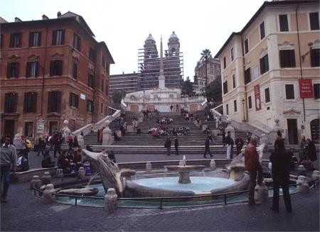 這座教堂乃1495年查理八世VIII命法國(guó)人建造,階梯共有137階,名稱取自附近的西班牙大使館,電影“羅馬假期”即在此拍攝。階梯下左側(cè)的墻壁上記載著:1821年詩(shī)人濟(jì)慈于此亡故。階梯上特有的法國(guó)風(fēng)味設(shè)計(jì)和廣場(chǎng)上的一些英國(guó)咖啡館,呈現(xiàn)出完全不同的氣氛。