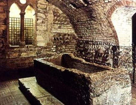在市中心布拉廣場附近有一座巴洛克風(fēng)格的教堂,據(jù)說當(dāng)年羅密歐與朱麗葉在神父的幫助下在這里秘密舉行了婚禮,后來兩人又在此雙雙殉情。教堂的地下室停放著一座沒有封蓋的空石棺,傳說是朱麗葉死后下葬的地方。