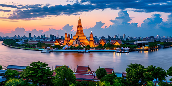 早餐之后我們開啟一段王室之旅。衣著整齊參觀泰國巍峨壯麗,金碧輝煌的大皇宮和玉佛寺(參觀約2小時),是王權(quán)和宗教融合的登峰造極之作,皇宮建筑風格美輪美奐,寶石鑲嵌鋪天蓋地,價值連城都不足以形容。乘船暢游湄南河-遠眺鄭王廟,鄭王廟(Wat Arun),又稱黎明寺(Temple of the Dawn),是紀念泰國第41代君王、民族英雄鄭昭的寺廟。始建于大城王朝,當時名皇冠寺,后改稱昌寺。后大理石寺參觀。前往大理石寺,它位于曼谷市北的阿育它亞路,又名“云石寺”,為拉瑪五世時所建。寺內(nèi)建有佛殿、藏經(jīng)閣、長廊、樓閣、佛學(xué)院等建筑。其主院建筑全部由意大利輸入的大理石建成。主殿大門兩側(cè)有石獅子守衛(wèi),殿內(nèi)供有一尊高約3米的釋迦牟尼金佛。主佛殿中的清拉佛像,是泰國著名彭世洛佛像的復(fù)制品。主殿后面,是一個以云石鋪地的大庭院,陳列著51尊泰國歷代各時期的各種類型的佛像,融合了中印等佛教造型藝術(shù)風格,是19世紀泰國佛教的典范。此外,還有中國或日本的佛像。隨后我們來到臥佛寺(約1小時)臥佛寺內(nèi)臥佛為世界最大臥佛,長46米,高15米,每只腳的腳底便長達5米,上刻有108個佛像圖案。佛臥之姿態(tài),在表達佛陀追求涅槃時之姿態(tài)。其右手托頭,全身側(cè)臥,悠然于佛壇之上,殿堂四壁以描寫佛祖生平的巨型壁畫相伴。之后送往曼谷唐人街(chinatown),自行游覽中華老傳統(tǒng)街景,同時體驗唐人街的特色美食小吃。隨后回酒店休息。