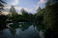 大自然的鬼斧神工,把這條峽谷雕鑿得景中有奇,奇中有景,出人意外,神秘莫測。 瀑布龍?zhí)都刃蹅延^,又揣急驚險,瀑布轟鳴,潭水急旋,峰崖陡峭,谷深路窄。登梯走橋時可從險中觀景,游人追求險中景,甘愿“鋌而走險”身臨險境,領(lǐng)略險中景的妙趣,險中景給游人增添了力量,大有不到真潭非好漢的感受。 黑龍?zhí)叮两襁€流傳著一個動人的傳說:古時候,有兩條龍,長大分家時,性格憨厚的黑龍主動把白龍?zhí)蹲尳o弟弟白龍,自己單身一人來到了古樓峪。那時候,這里沒有一滴水,沒有一棵草,黑龍變成了小伙子,沒白天沒黑夜地拼命干,大西山的云蒙老祖看著黑龍又憨厚又勤快,就送給他一條彩帶和十八條珍珠,黑龍把珍珠灑在了古樓峪內(nèi),因此形成了現(xiàn)在的十八個奇潭。