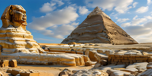 底邊長(zhǎng) 230.35m,是最大的金字塔;它是一座幾乎實(shí)心的巨石體,用 200 多萬塊巨石砌成。金字塔 的旁邊還有一些皇族和貴族的小小的金字塔和長(zhǎng)方形臺(tái)式陵墓。最初鋪蓋金字塔的外層磨光的灰白 色石灰石塊幾乎全部消失。如今見到的是下面淡黃色的石灰大石塊,顯露出其內(nèi)部結(jié)構(gòu)。海夫拉金 字塔高 143.5m,底邊長(zhǎng) 215.25m;在海夫拉金字塔祭祀廳堂的門廳旁邊,有一座高約 20m、長(zhǎng)約46m 的【獅身人面像】大部分就原地的巖石鑿出。吉薩區(qū)的金字塔的偉大在于其外形建筑而舉世聞名, 及其堅(jiān)貞的守護(hù)神獅身人面像,令您驚嘆不已。