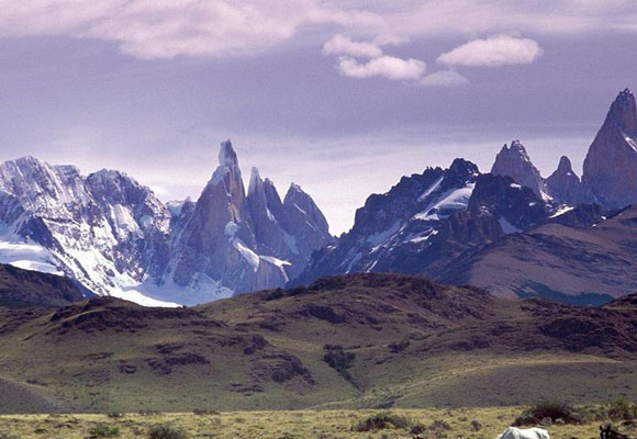 雖然現(xiàn)在是夏季,可遠(yuǎn)處高山上仍然白雪皚皚,終日被霧氣環(huán)繞。融化的雪水從山上流下來,形成了許多小河,滋養(yǎng)著山腳下一叢叢低矮的松樹和五顏六色的野花。我們的旅行車就穿行在這綠樹花海之中,倒也不乏詩意。進(jìn)了公園后,一車人在導(dǎo)游的帶領(lǐng)下,徒步穿越低矮的灌木林,向冰河進(jìn)發(fā)。這是我第一次近距離觀賞帕塔格尼亞的植被,這里到處都是以前從沒見過的長相奇異的花草,北半球的植物學(xué)家來到這里肯定會高興得發(fā)瘋。就在我一邊欣賞著無名的野花,一邊爬上一座山坡的時候,夢想中的冰河突然悄無聲息地出現(xiàn)在眼前,白茫茫的一片浮冰讓我感到似乎有一股冷氣迎面撲來。爬到山頂仔細(xì)一看,在寬達(dá)一公里的江面上豎立著一道白色的冰墻,與墨綠色的河水無聲地對峙著。冰墻高達(dá)60余米,俯視著毫無波瀾的江水,似乎在這場對峙中占了上風(fēng)。無數(shù)細(xì)碎的冰塊散落在江面上,靜止不動。走近再看,我發(fā)現(xiàn)冰墻的表面到處都是坑坑洼洼的溝壑,冰縫中竟然透出藍(lán)色的光芒。爬到高處再一看,我發(fā)現(xiàn)這冰墻后面是聯(lián)綿不斷的冰山,夾雜在綠色的山峰之間向遠(yuǎn)處伸展開去。冰面上霧氣繚繞,一座座圓錐型的尖峰隱藏在霧氣之中,好似藏有千軍萬馬。導(dǎo)游介紹說,Perito Moreno國家公園的這條冰河面積比整個布宜諾斯艾利斯還要大,而整個帕塔格尼亞的冰河總面積竟然高達(dá)17000平方公里之多!不管周圍環(huán)境溫度有多高,冰河上方的溫度總是很低。很多部分年降雪量高達(dá)30余米,這股天降之力促使冰河以每天2米的速度向陸地移動。我們所在的地方正是冰河與陸地的交匯之處,表面上看是冰墻與河水的對峙,可實(shí)際上真正的交戰(zhàn)發(fā)生在水下,是冰河與陸地硬碰硬的戰(zhàn)斗!堅(jiān)硬的冰斗不過更加堅(jiān)實(shí)的土地,于是每隔一段時間就會有冰塊從冰墻上脫落,掉進(jìn)水中,這就是那些飄浮在河水表面的冰塊的由來。