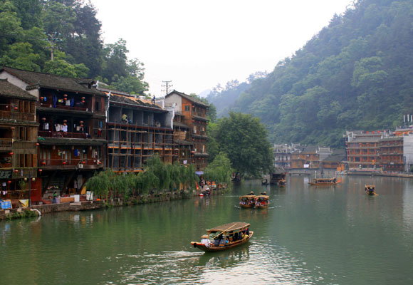 鳳凰古城,然后長(zhǎng)沙到鳳凰縣的車程就需要5個(gè)多小時(shí),當(dāng)我們到達(dá)了鳳凰縣的時(shí)候已經(jīng)是下午3點(diǎn)多鐘,雖然說(shuō)旅途中有說(shuō)有笑的很興奮,但是隨之而來(lái)而的情況就不是這樣了,當(dāng)我們到達(dá)了下車去趕往客棧的路途上我們已經(jīng)對(duì)這個(gè)