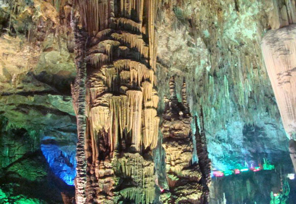 午飯后我們繼續(xù)旅程,經(jīng)過自渡津(需要自已拉船過渡),我們就到了龍宮景區(qū)。等了約半個(gè)多小時(shí)后(需湊滿8個(gè)人一船),我們乘船穿過一條500多米的人工修整過的隧道后(據(jù)說在沒通隧道前需翻山走二小時(shí)),換乘另一條船游龍宮。龍宮是一條長(zhǎng)約1000多米的地下積水溶洞,由5個(gè)大小不同的廳,布置有一些燈光,隨船導(dǎo)游講一些耳熟能詳?shù)?ldquo;經(jīng)典”導(dǎo)游段子,如九龍戲水、八戒迎親什么的。
